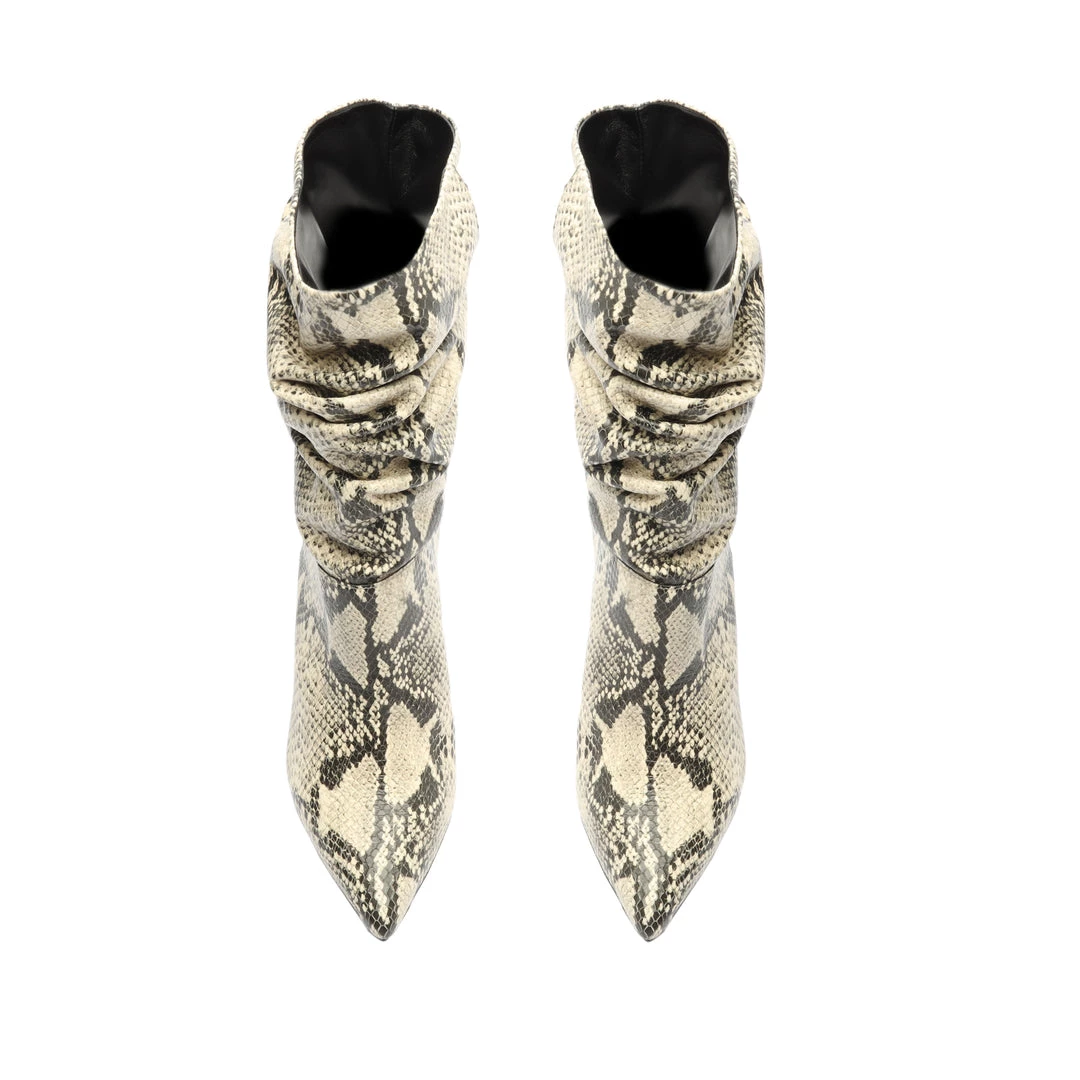 The Ashlee is a slouchy boot designed in snake-embossed leather with a stiletto heel and pointed toe. Take it from day to night with a feminine slip dress.