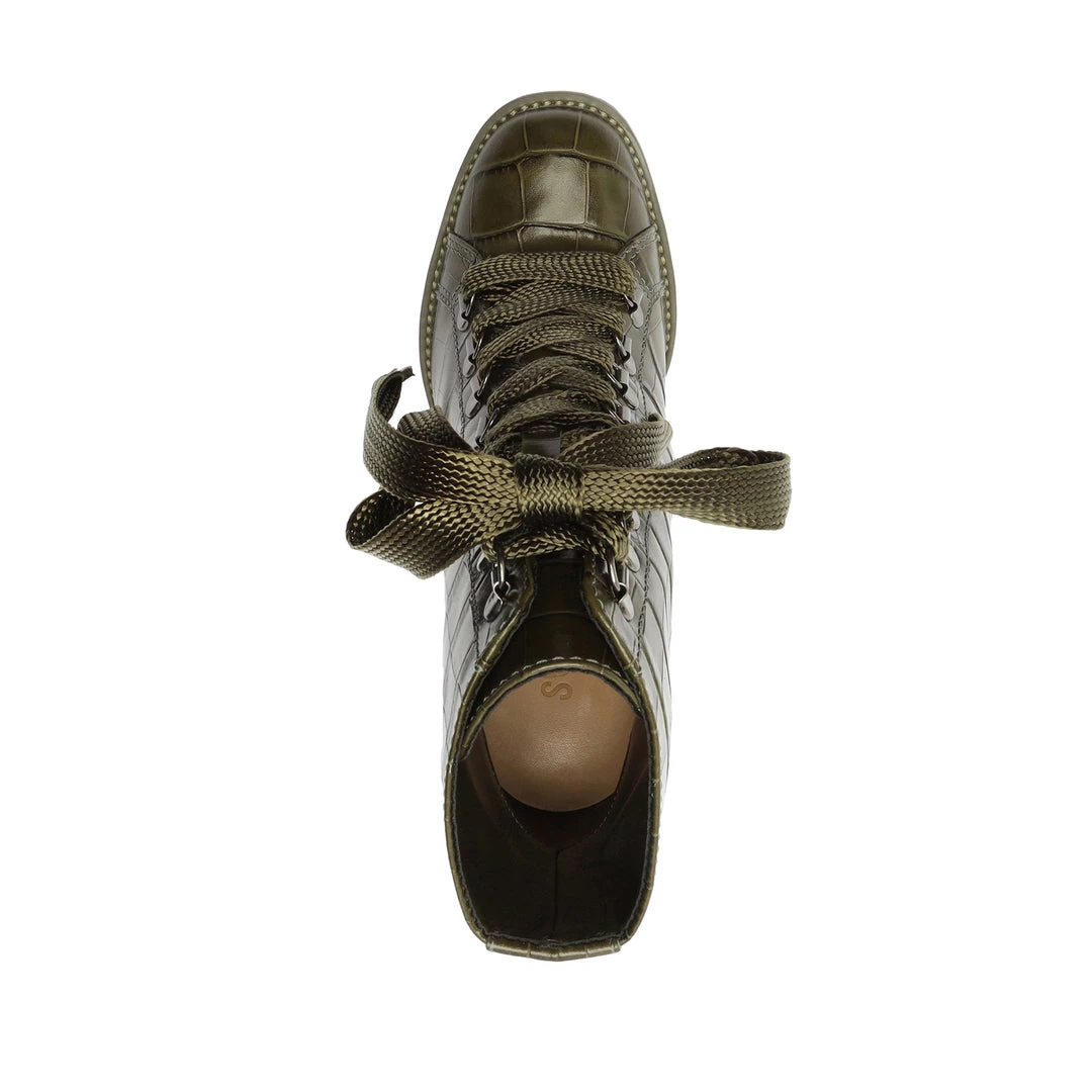 Elevate your boot game with the Zhara. This lace-up style is made from Crocodile-Embossed Leather for a glamorous take on the combat trend.