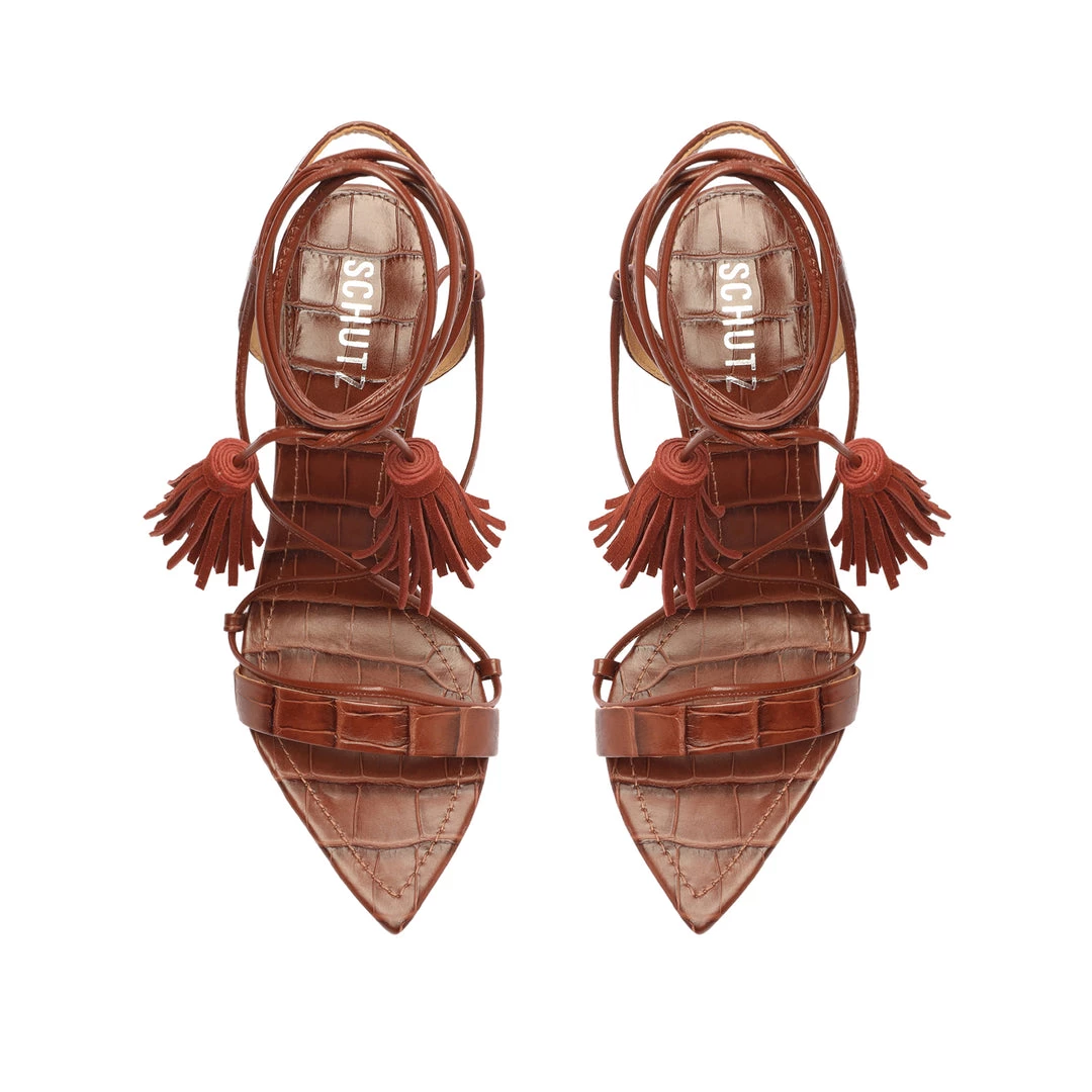 Boho-chic tassels swing with every step in the Melissa Sandal, a luxe design in embossed leather.
