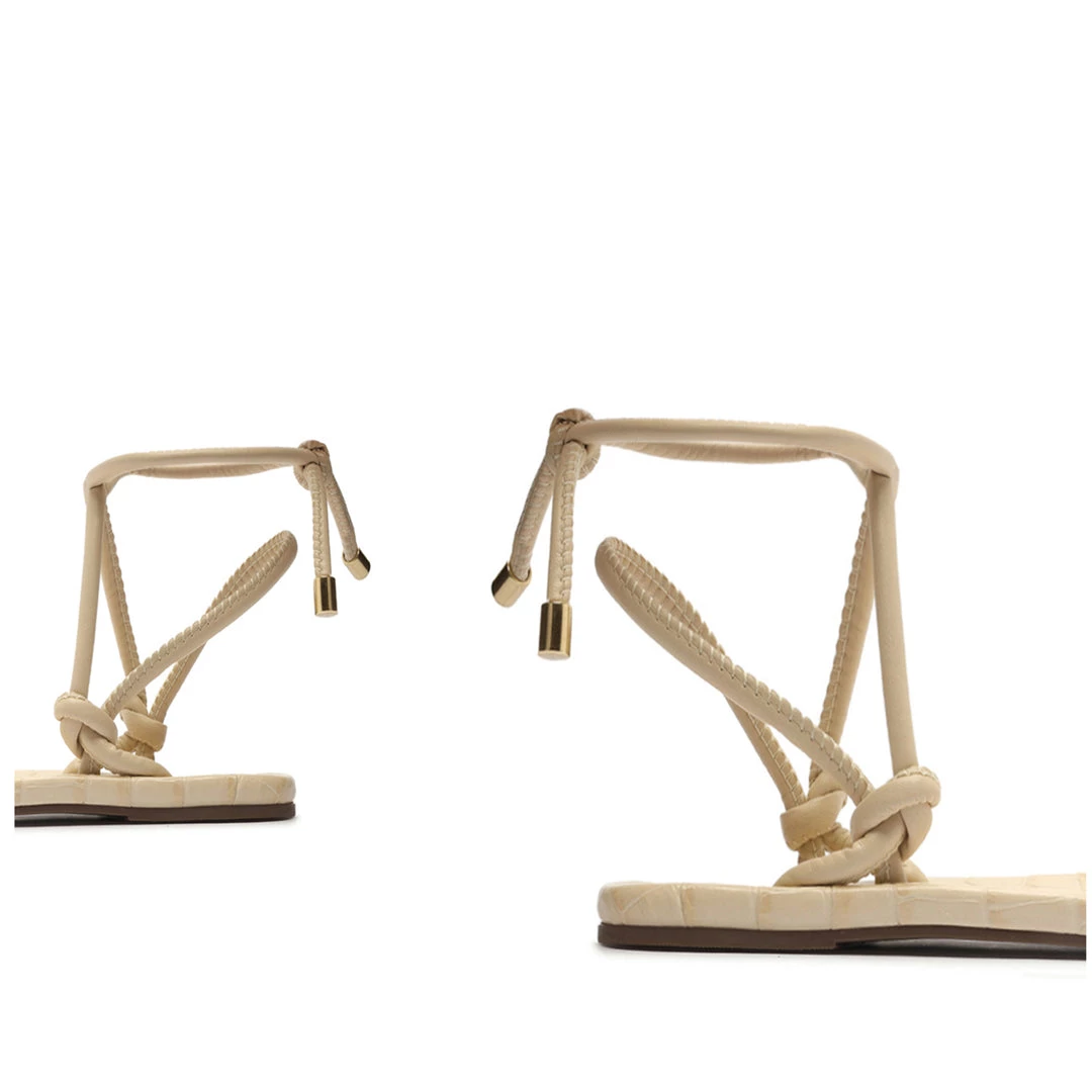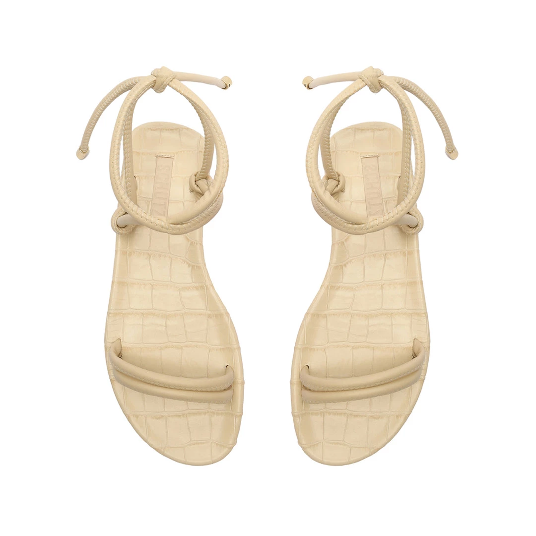 The Nity is an effortlessly stylish flat sandal in leather with a delicate ankle tie fastening.
