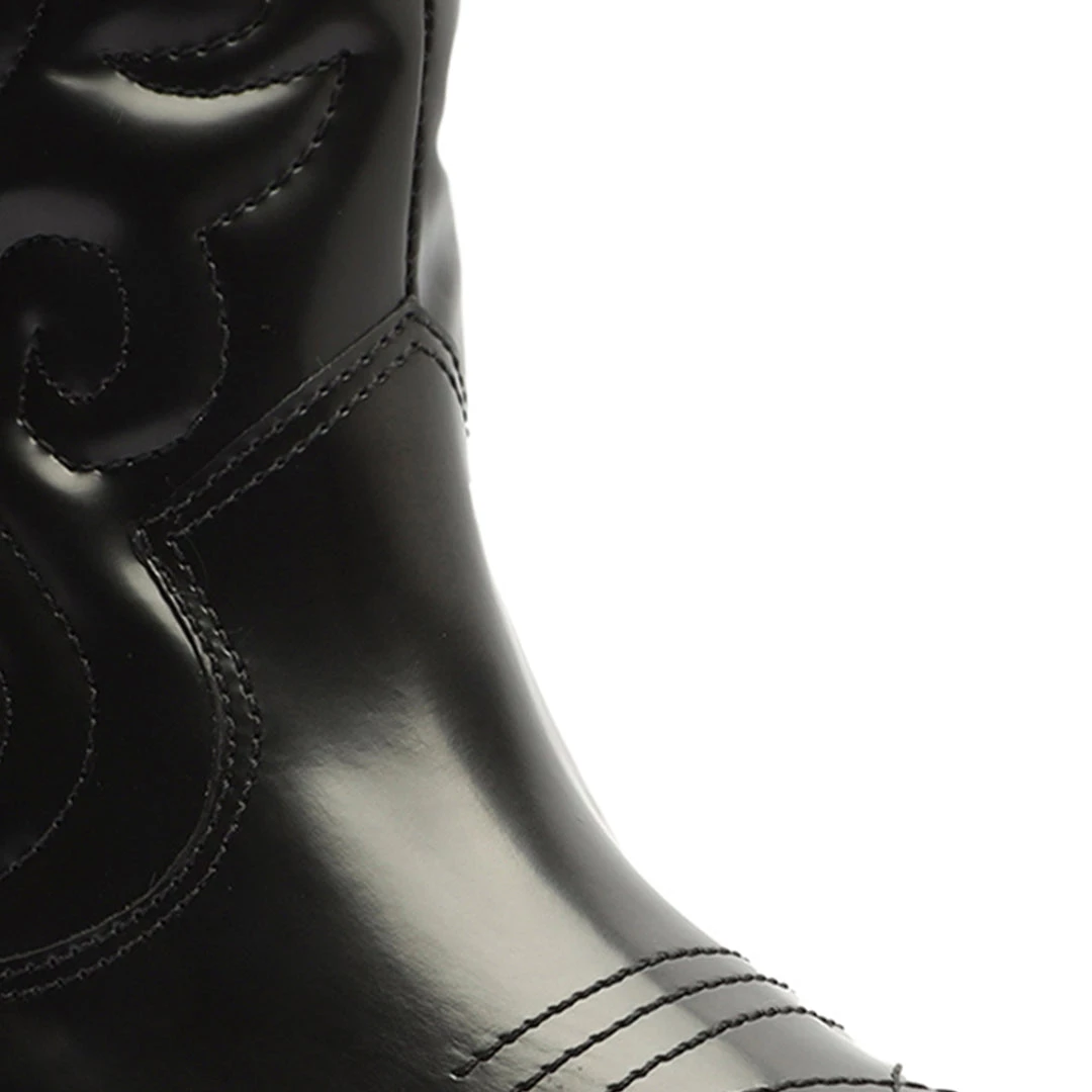 Western-inspiration defines the Zachy Boot, crafted from leather with top-stitching, a pointed toe and a minimal heel.