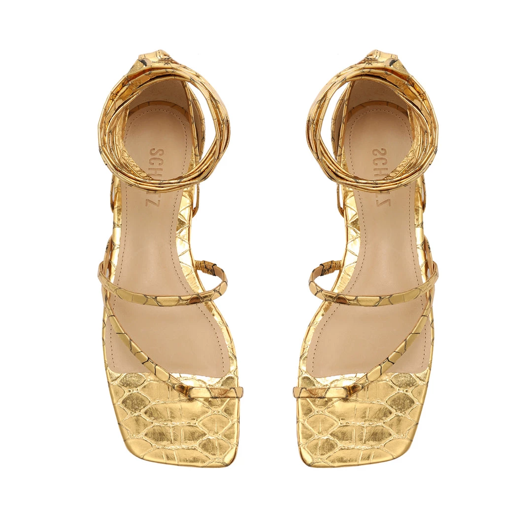 Crafted in embossed metallic leather, the Lily sandal makes a modern statement with every step.