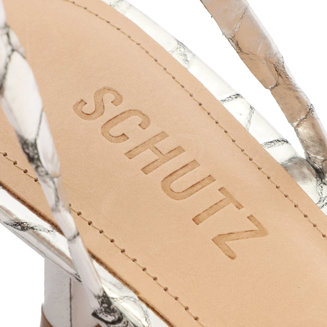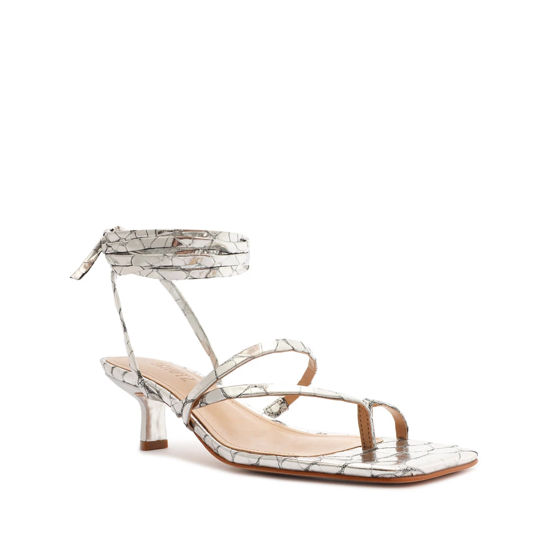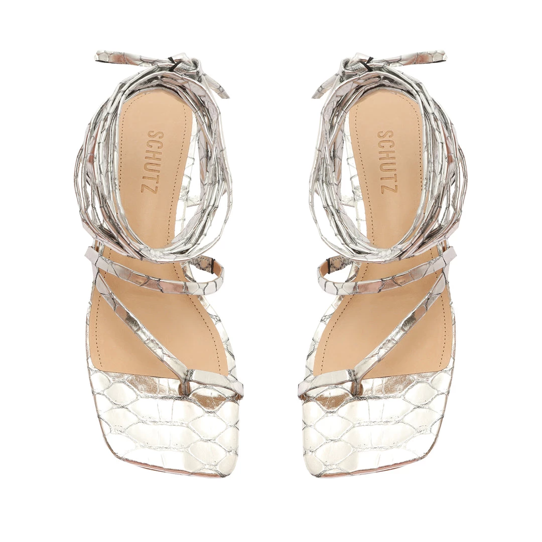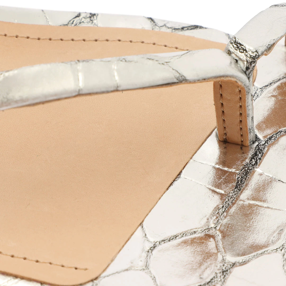Crafted in embossed metallic leather, the Lily sandal makes a modern statement with every step.