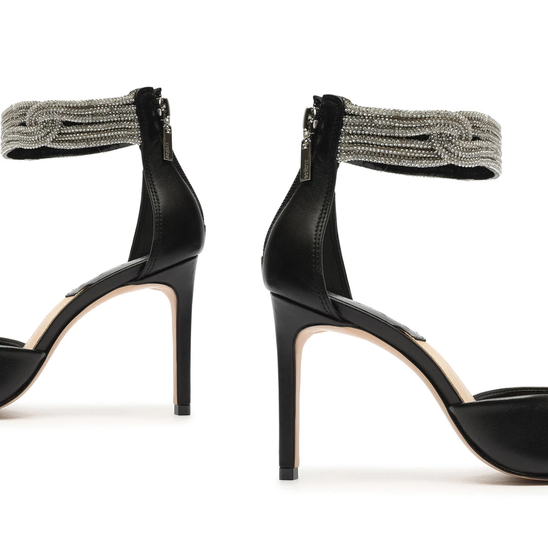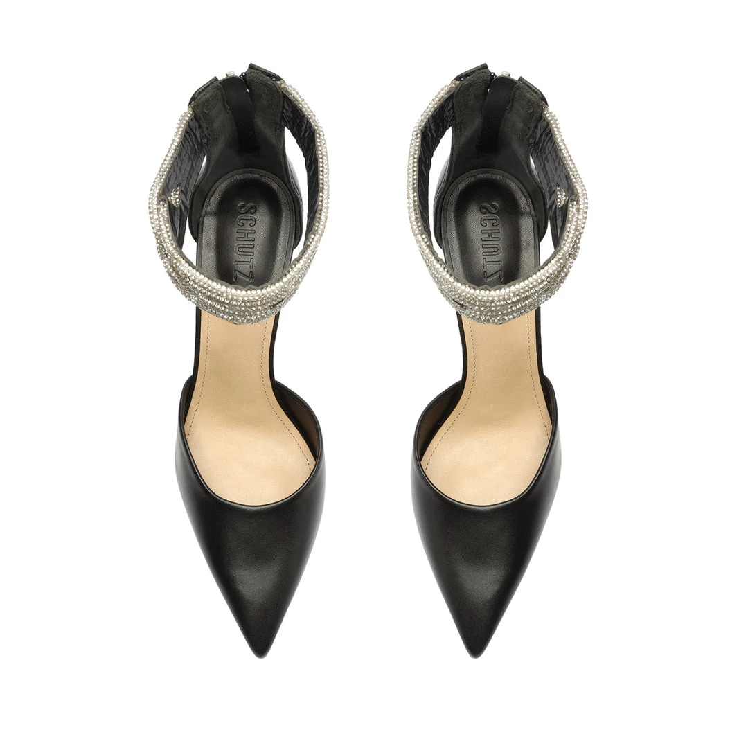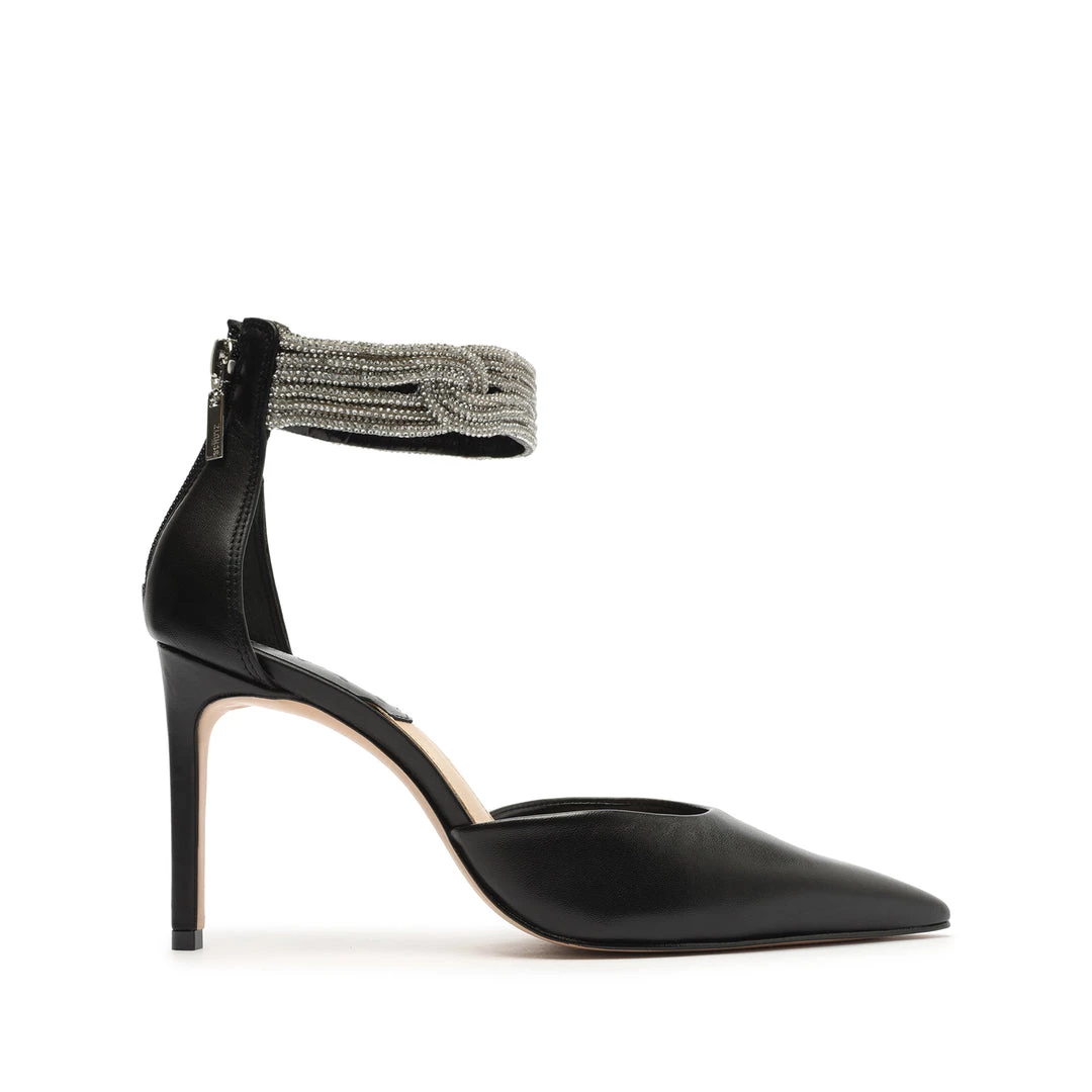 Embellishments at the ankle strap define the Linara Pump, an evening-ready style in leather with a pointed toe.