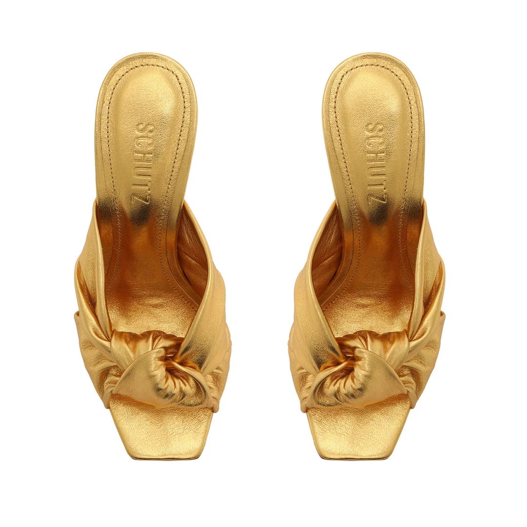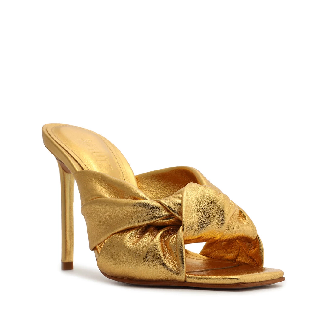 Embrace a metallic mood in the Mindy Mule, a sleek silhouette crafted in gleaming leather with a stiletto heel.