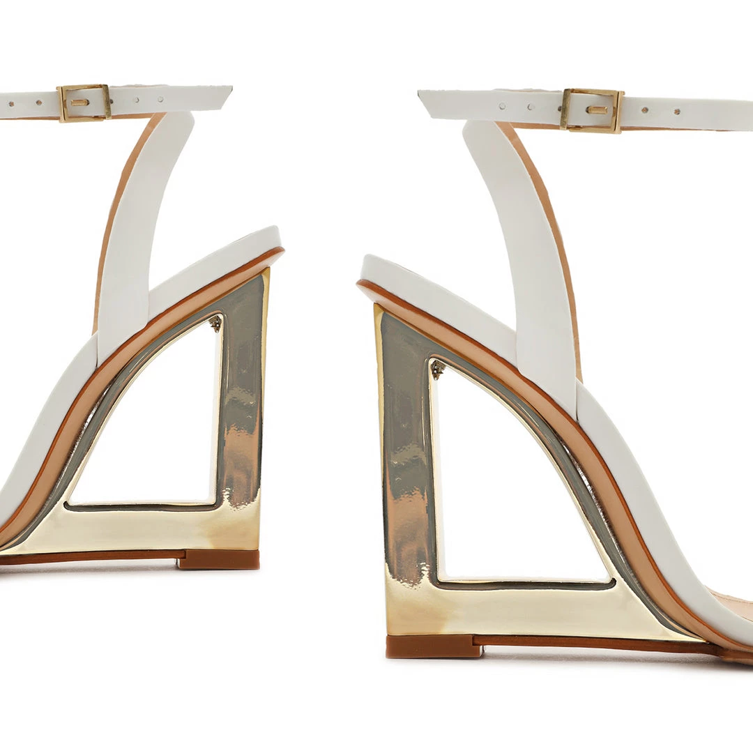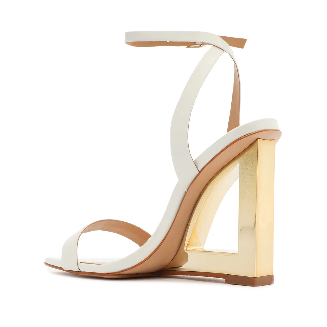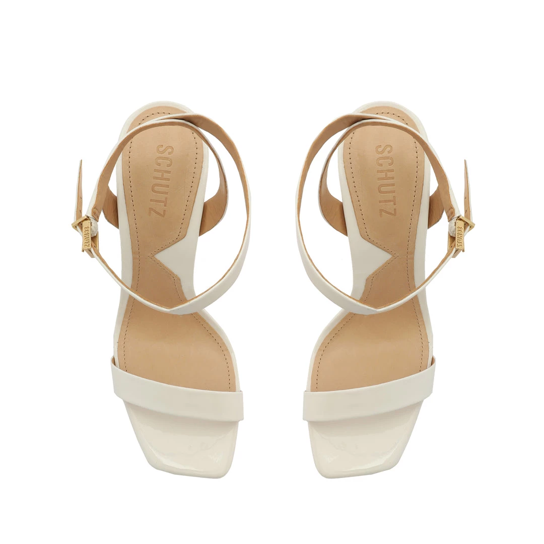 A statement heel defines the Filipa Sandal, crafted from neutral leather with a square-shaped toe.