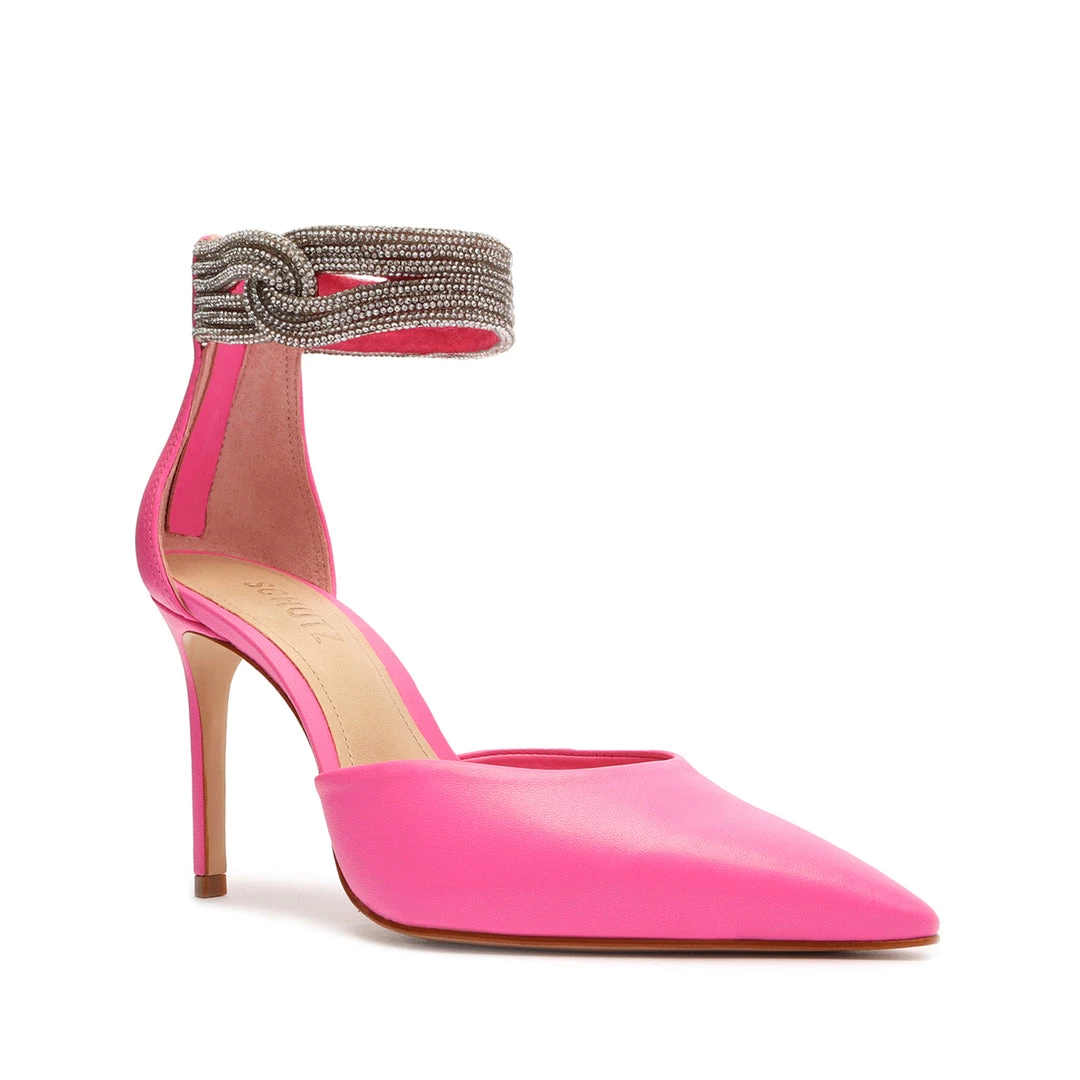 Embellishments at the ankle strap define the Linara Pump, an evening-ready style in leather with a pointed toe.