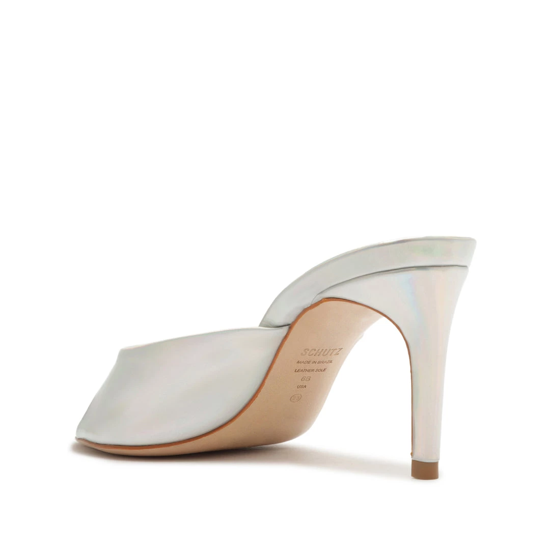 Minimal meets glamorous in the Rayne Mule, a versatile heeled silhouette that has been crafted from metallic leather.