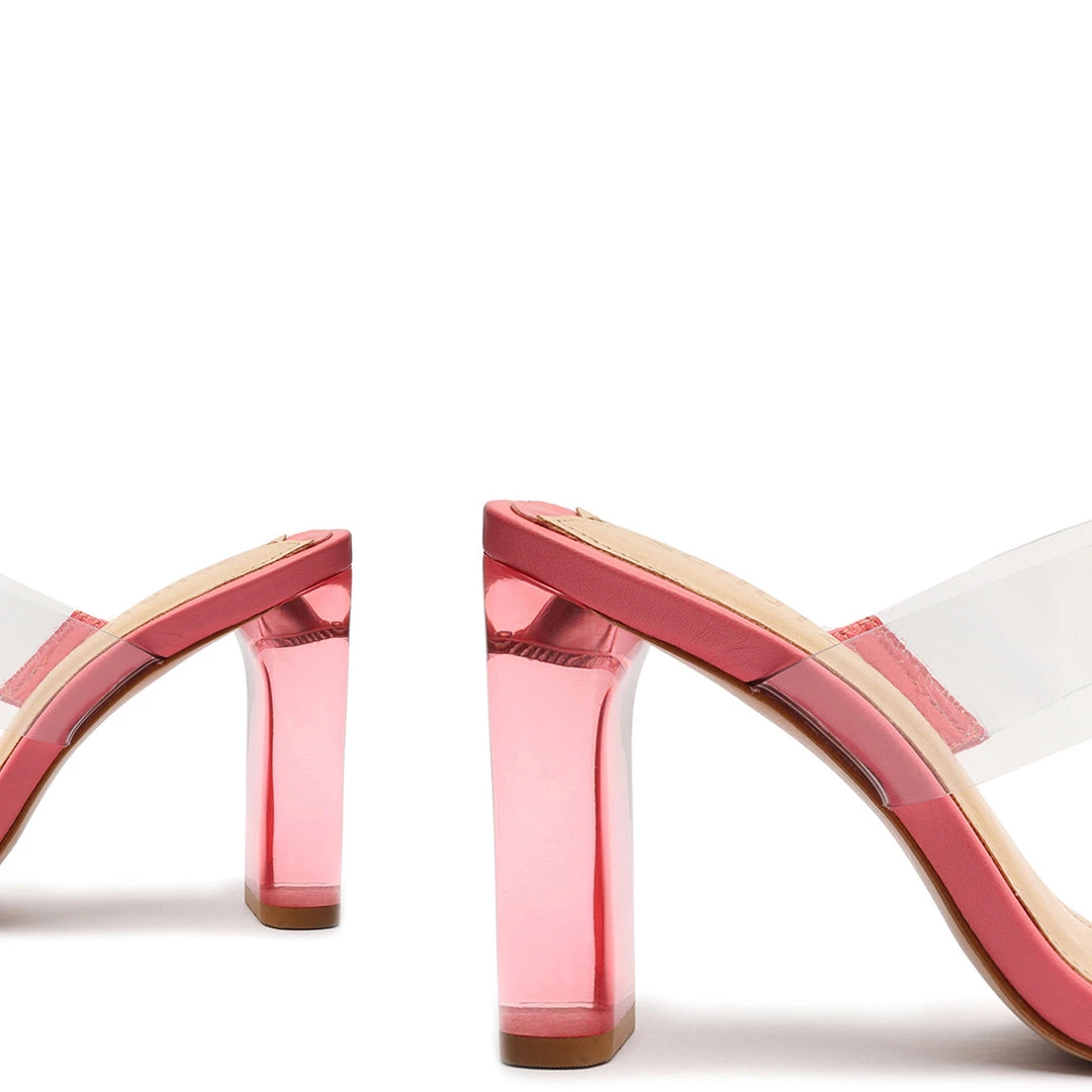 Our top-selling Ariella Sandal returns in a bold new silhouette of acrylic and vinyl for a modern statement that manages to complement any look.