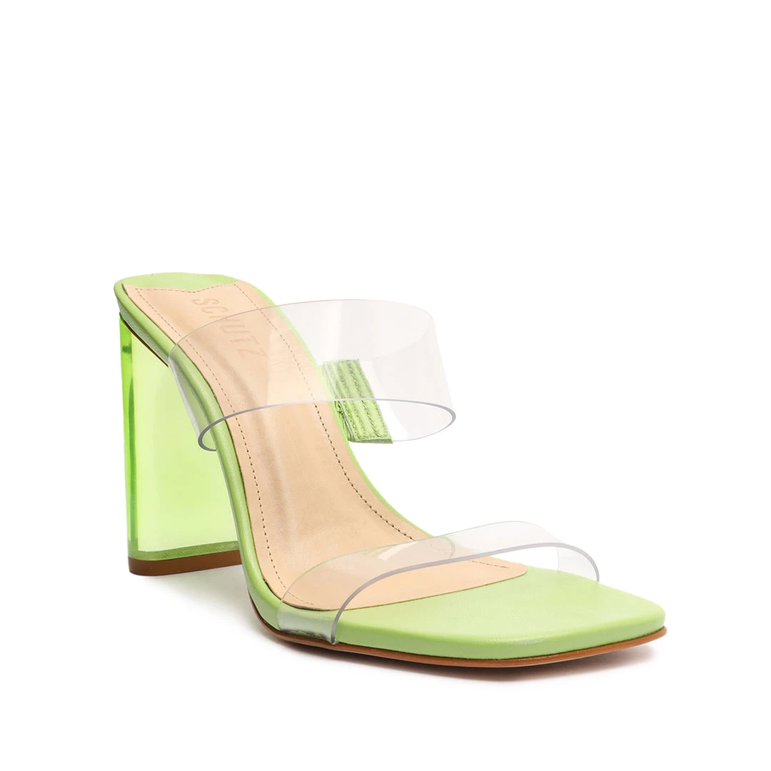 Our top-selling Ariella Sandal returns in a bold new silhouette of acrylic and vinyl for a modern statement that manages to complement any look.