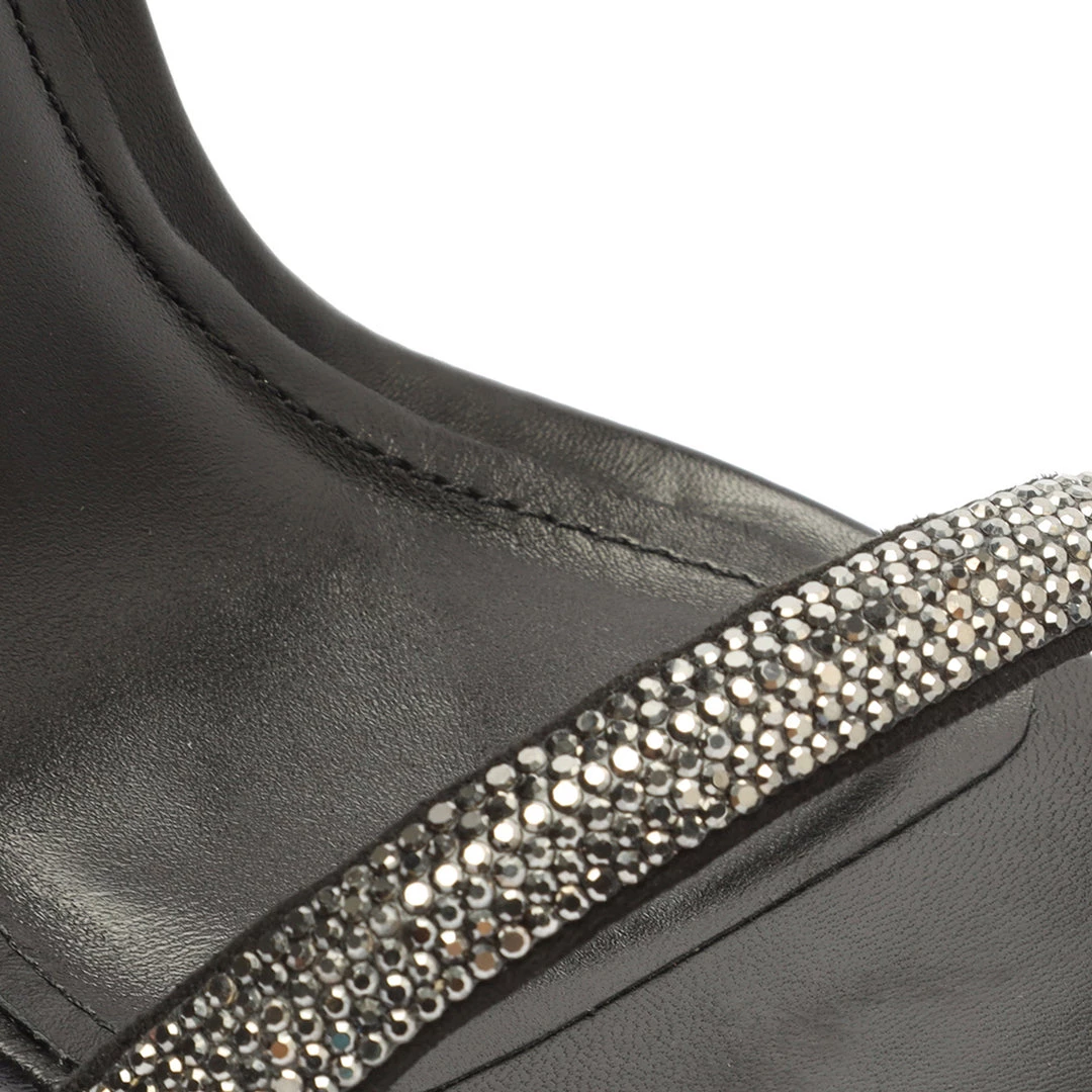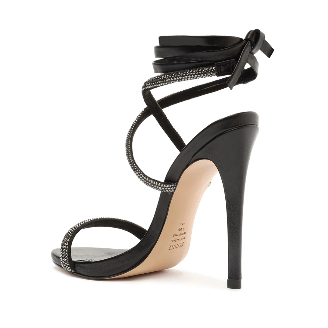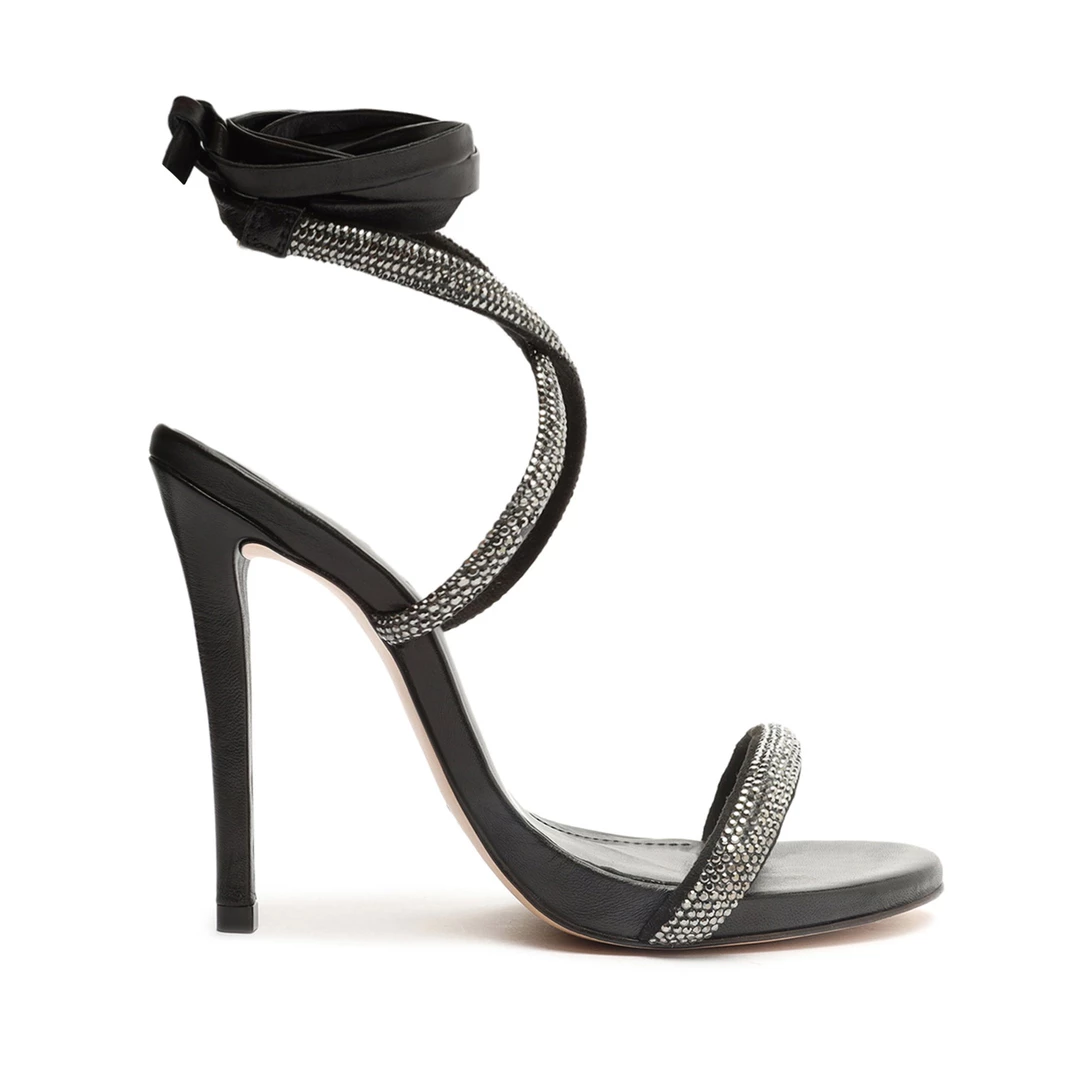 Ankle-wrap details, crystal embellishments and a soaring stiletto heel make a glamorous impact on the Cloe Sandal in leather.