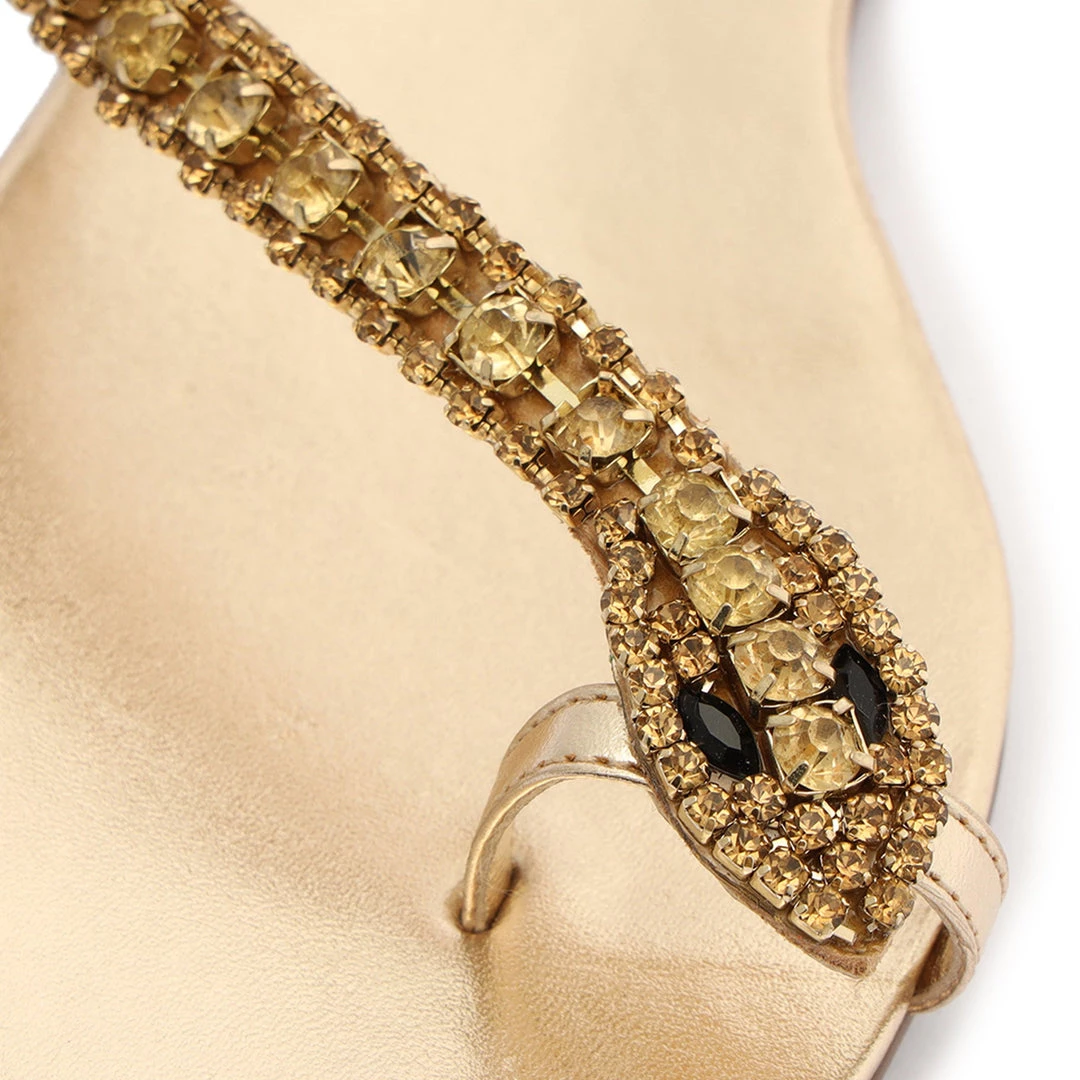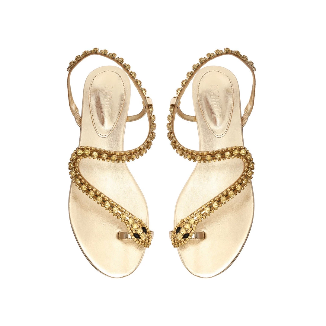A flat sandal with a fabulous point of view, the Court is crafted in metallic leather and finished with sparkling rhinestone accents.