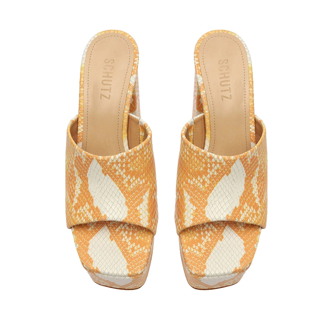 The Darah platform sandal features a snake-embossed leather with a square-toe design that pairs perfectly with jeans and dresses alike.