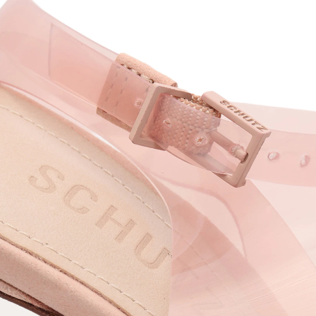 A peek-a-boo peep-toe pump with serious style. The Eryka pump is set on a soaring stiletto heel with an adjustable ankle strap and see-through vinyl upper.
