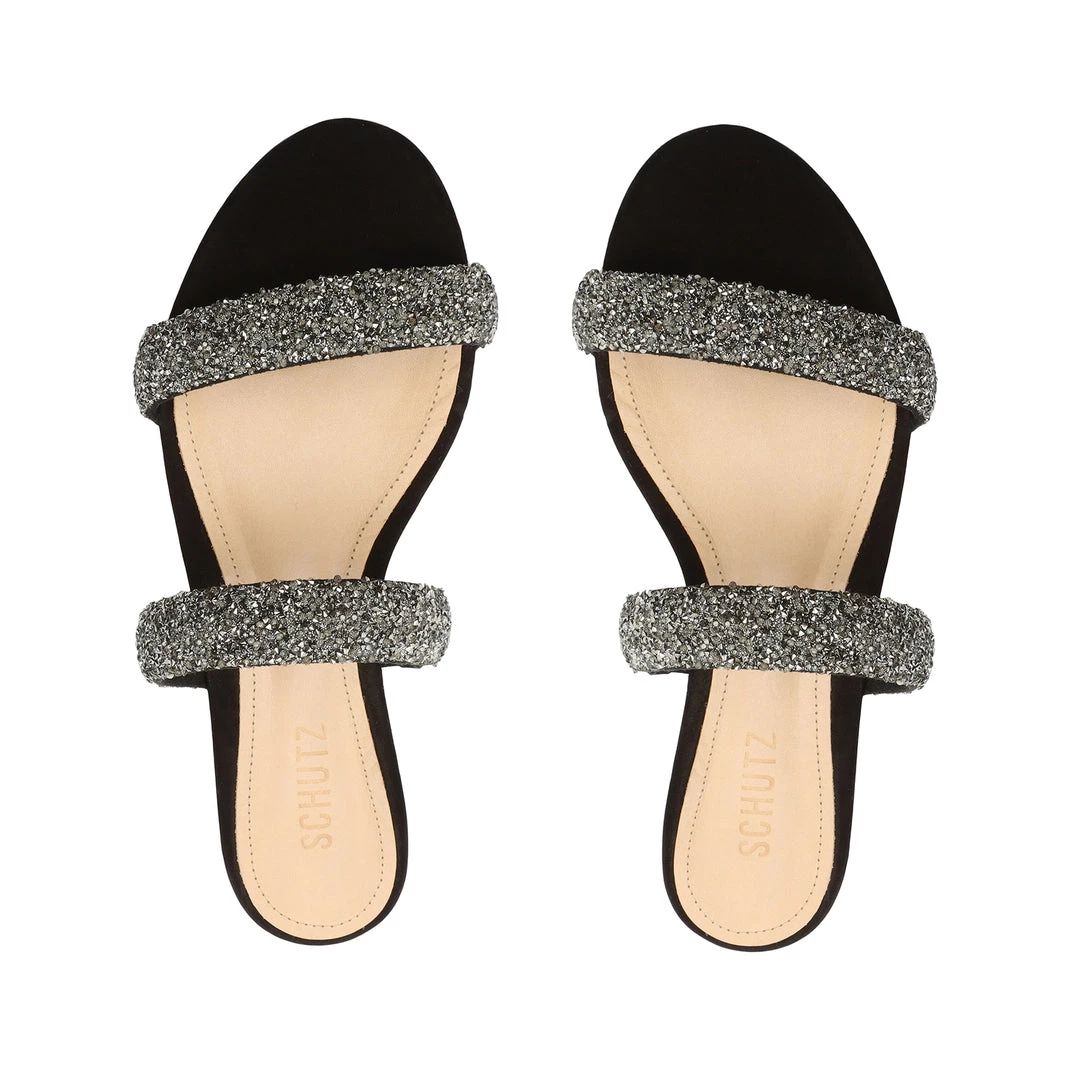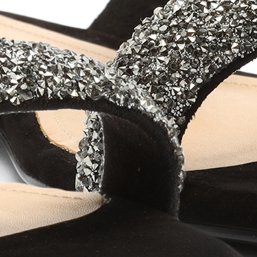 - Double rhinestones strap at the instep