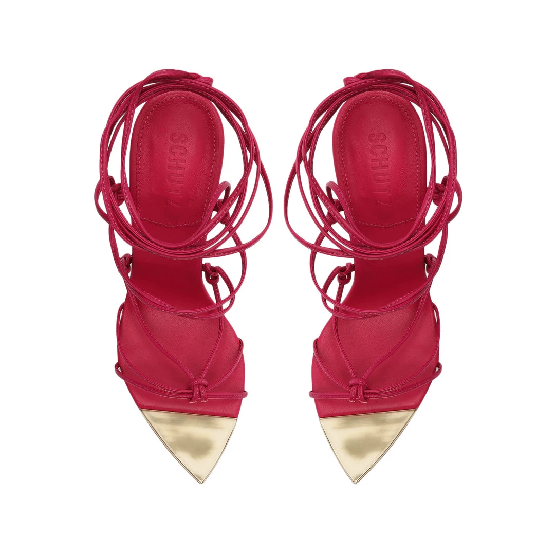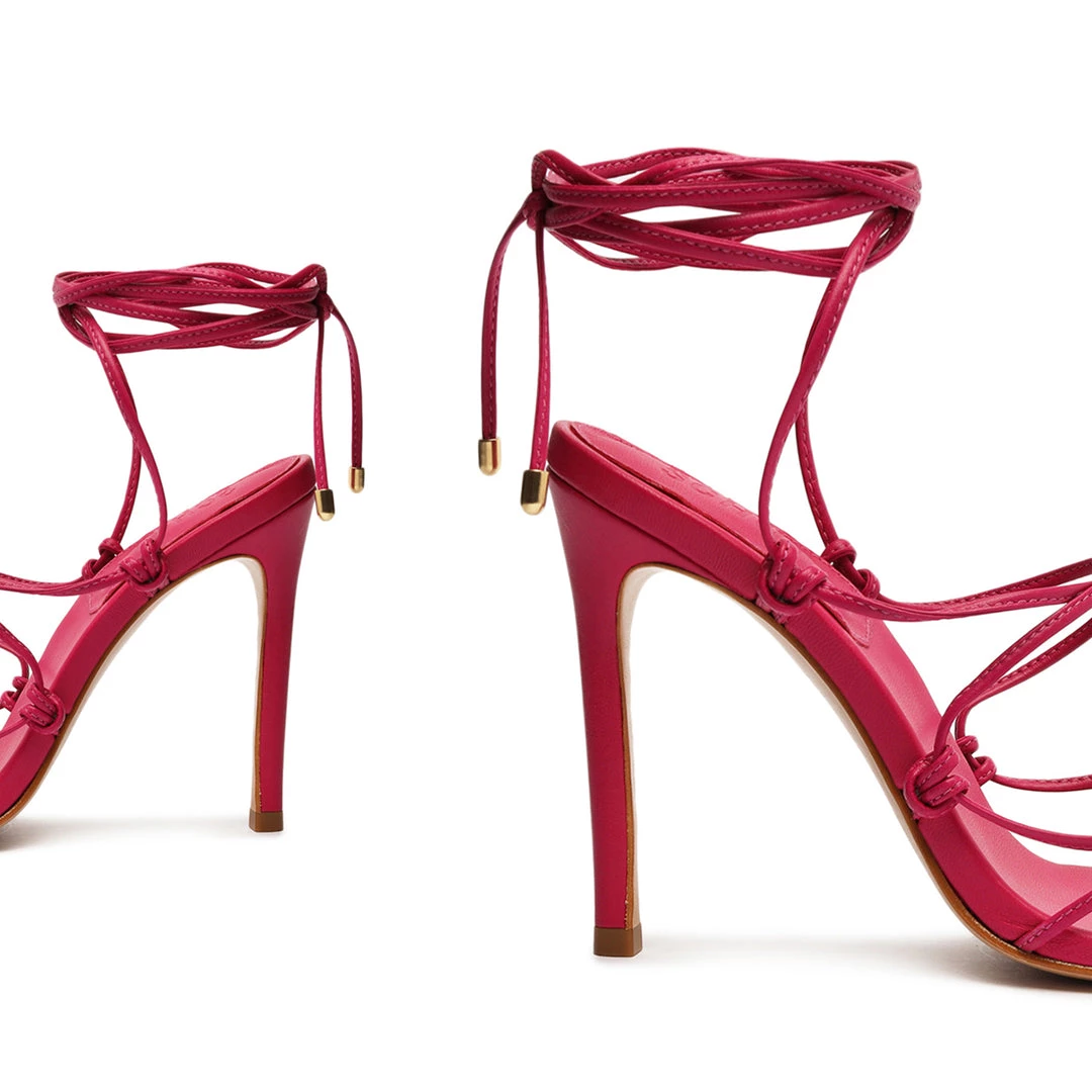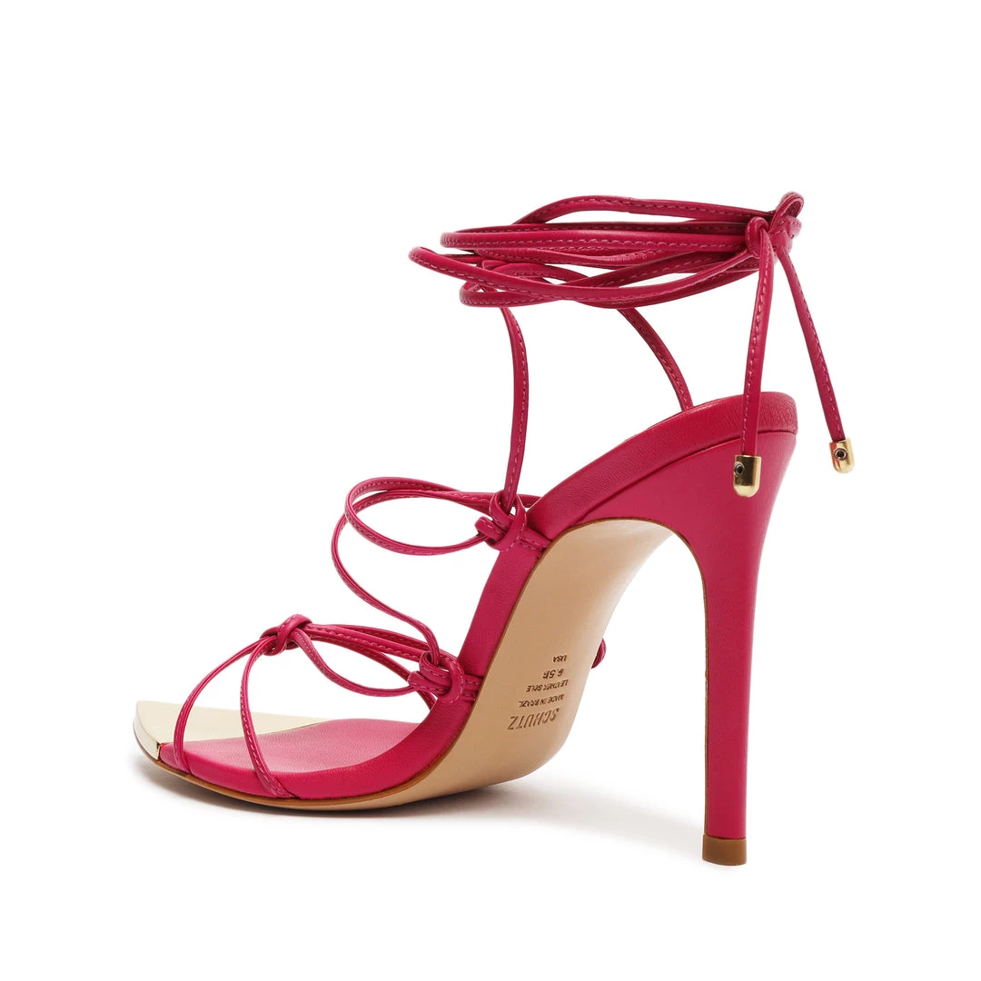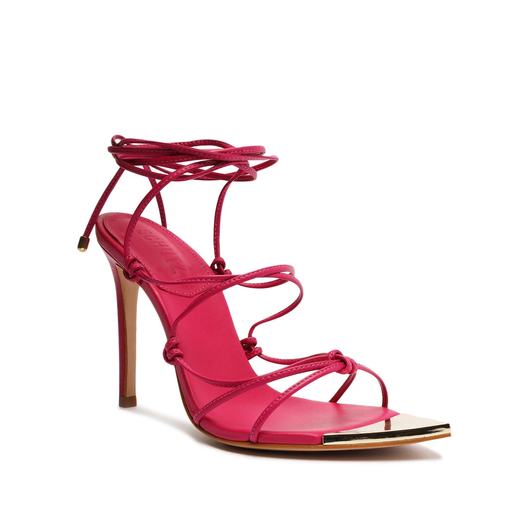 Knotted accents and a gold-tone cap toe define the Hana Sandal, a leather silhouette with a pointed toe set on a soaring stiletto heel.