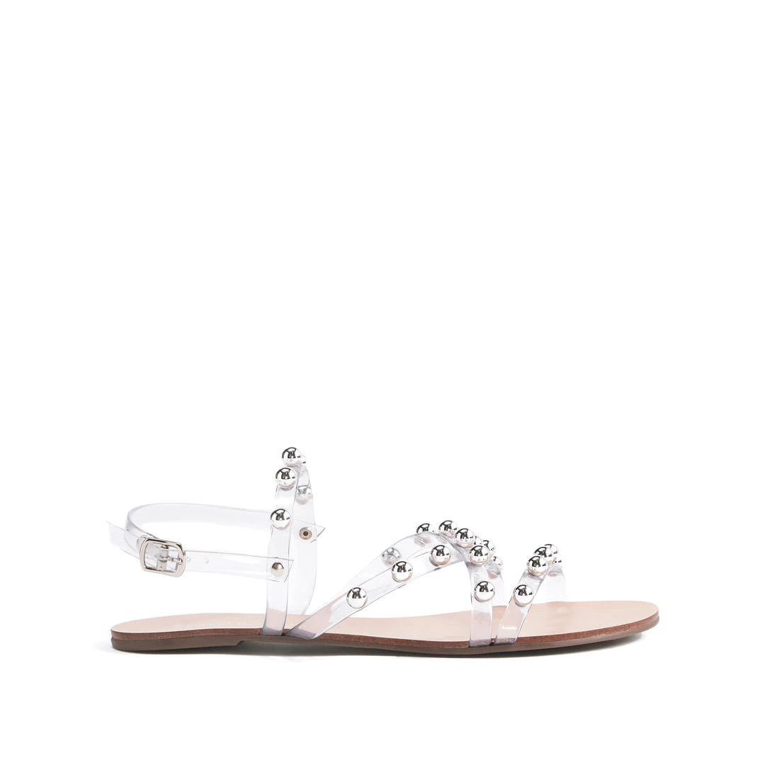 Hey, stud. The Lina Sandal is flat style featuring bold metal hardware and see-through vinyl straps. It’s the perfect pair to take you from city sidewalks to beach-side boardwalks.