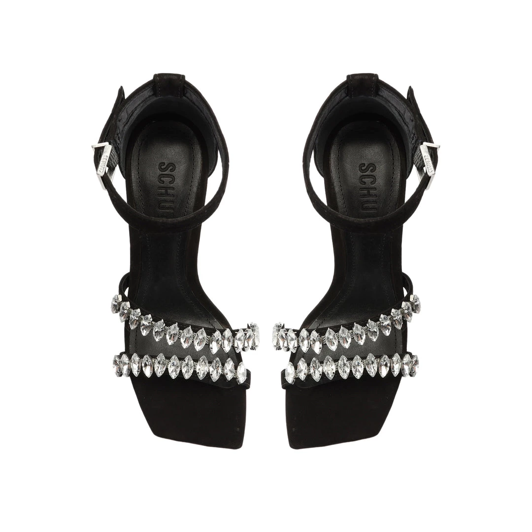 An embellished strap elevates the Linsey Sandal in leather with a square-shaped toe and stiletto heel.
