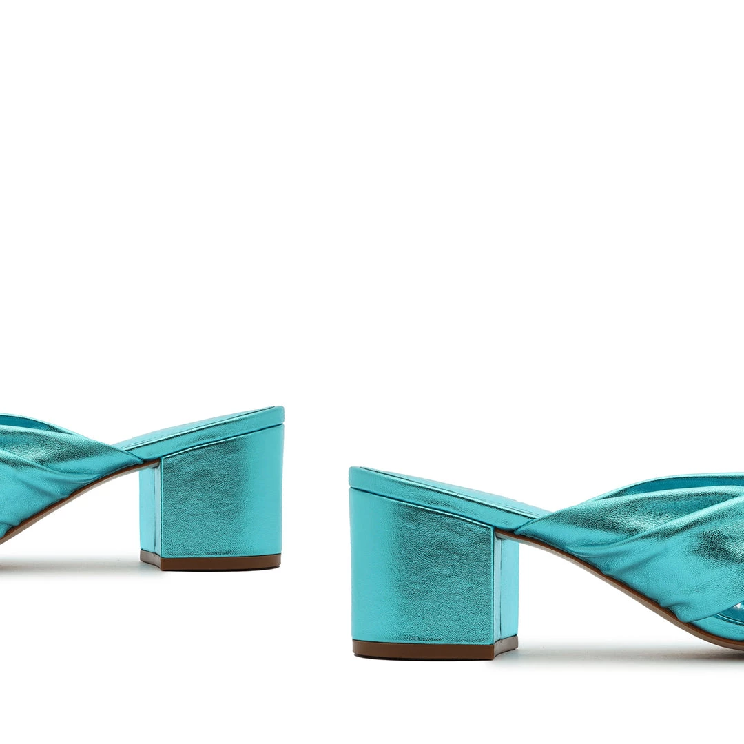Embrace a metallic mood in the Mindy Mule, a sleek silhouette crafted in gleaming leather with a block heel.