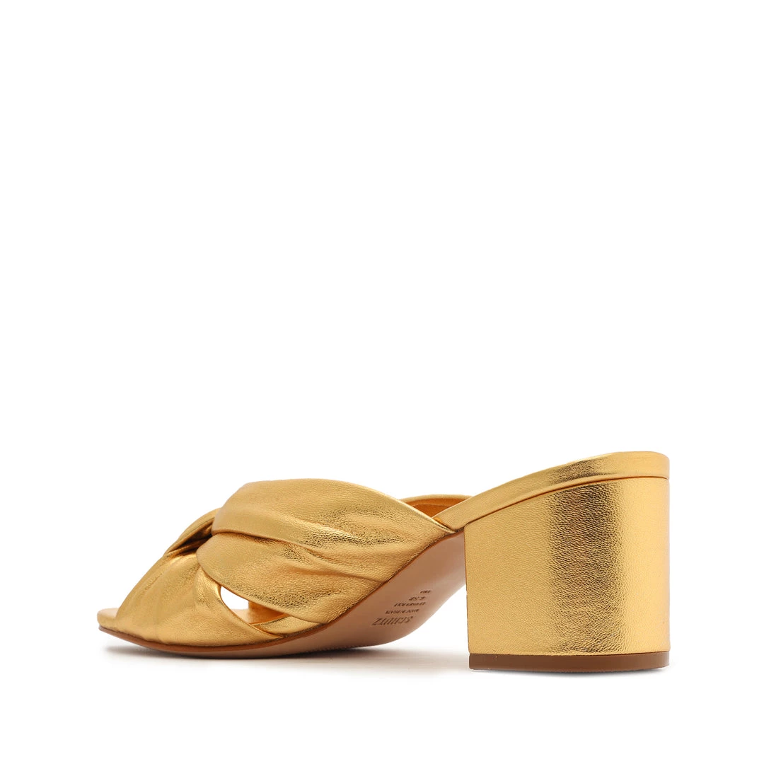Sale Mindy Mid Block Metallic Leather Sandal