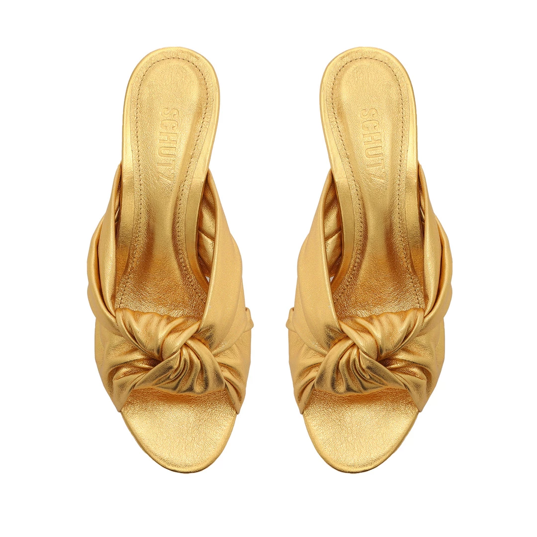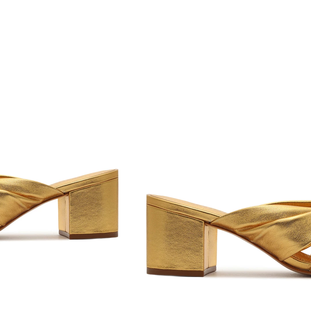 Embrace a metallic mood in the Mindy Mule, a sleek silhouette crafted in gleaming leather with a block heel.