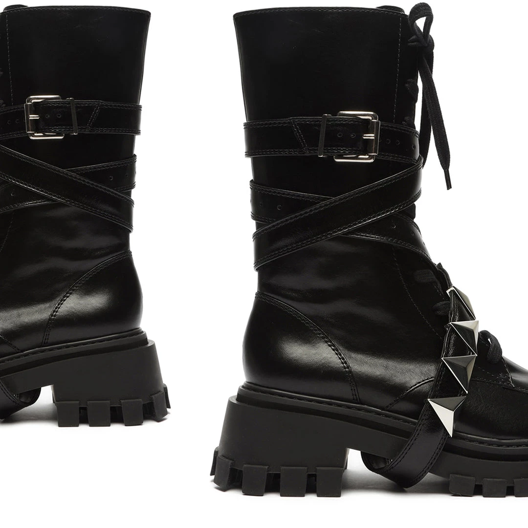 The Monttila is a statement-making boot crafted from leather and set on a lug sole. High-shine accents and lace-up detailing finish it with a dose of sleek edge.