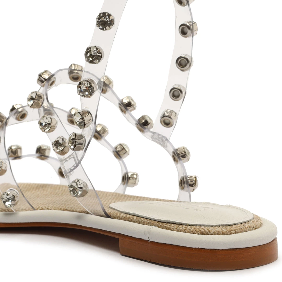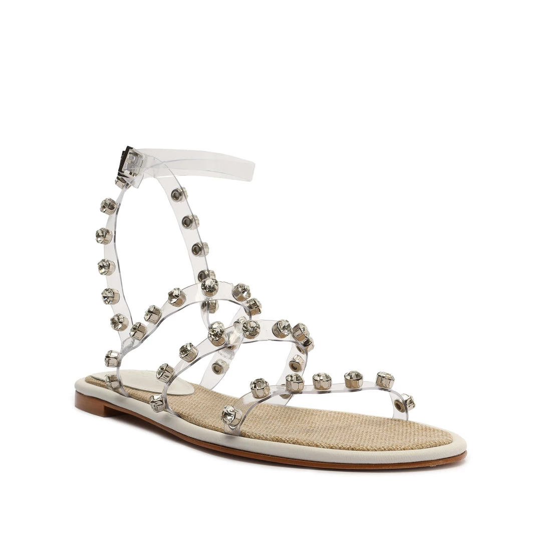 Studded see-through straps highlight the Steph Sandal. This versatile flat style will anchor daytime outfits with an effortless edge.