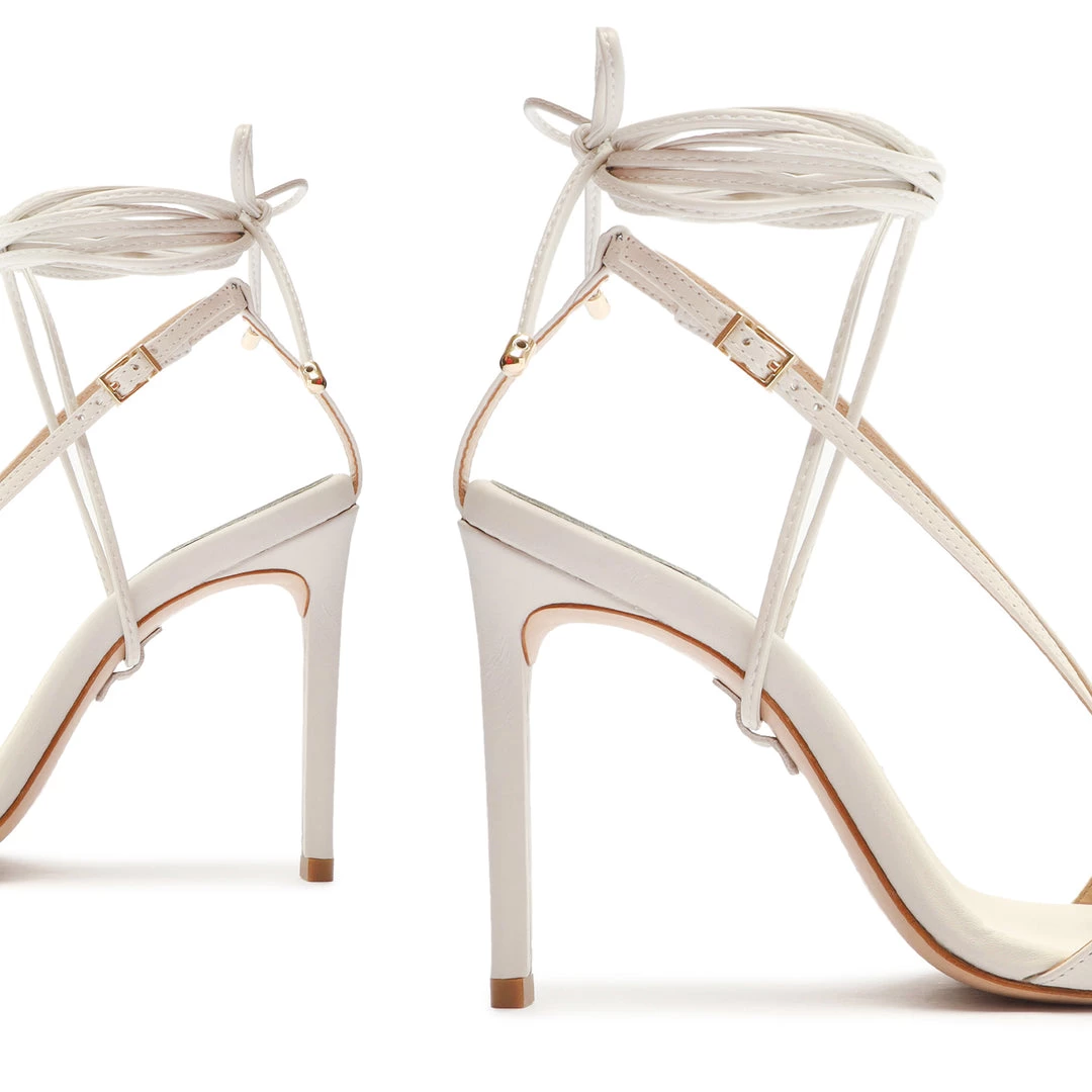 Up, up and away. Reach new style heights in the Vikki Sandal. This stiletto-heeled style is crafted from leather with a square-shaped toe and ankle-wrap detailing.