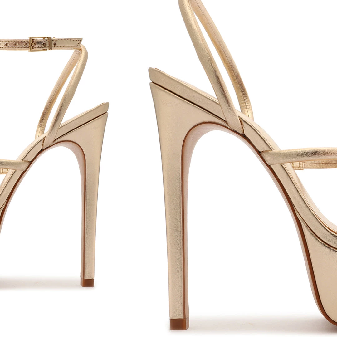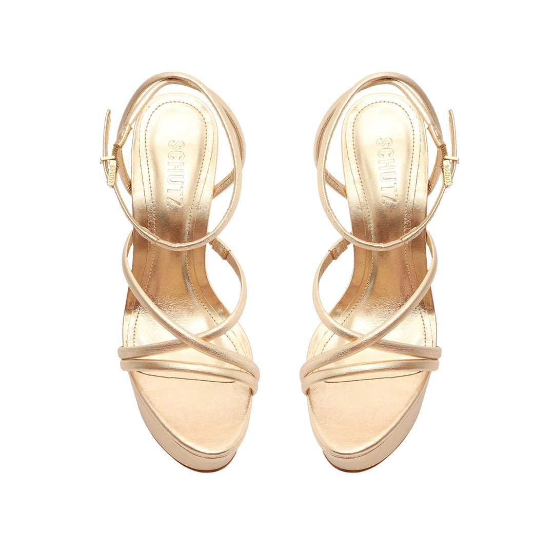 Zila keeps up with the latest trends in footwear, with stylish metallic leather upper, a round open toe and a wraparound adjustable ankle strap.