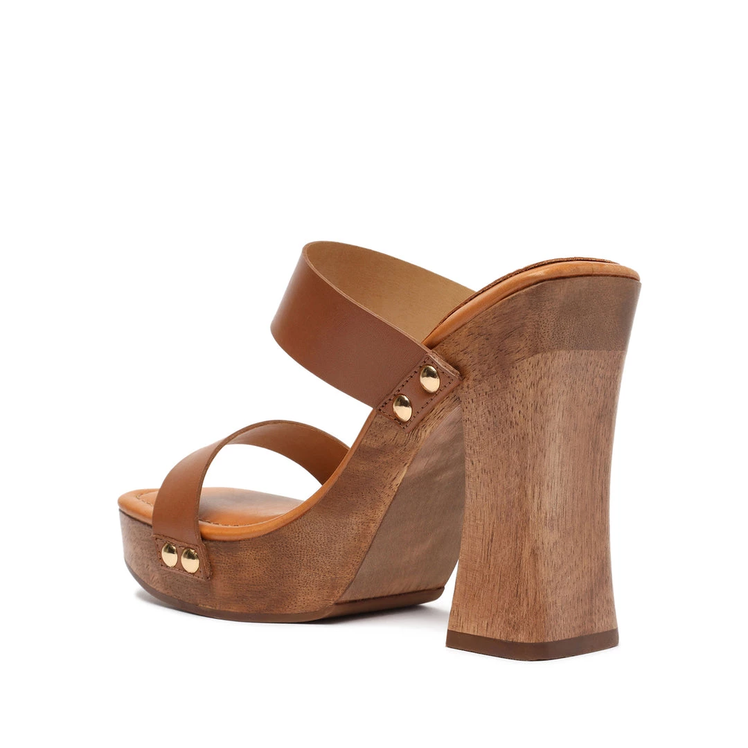 Combining elements of a clog and a mule, the Aryana is made from leather and set on a wooden platform and block heel. This style is finished with gold-tone hardware.